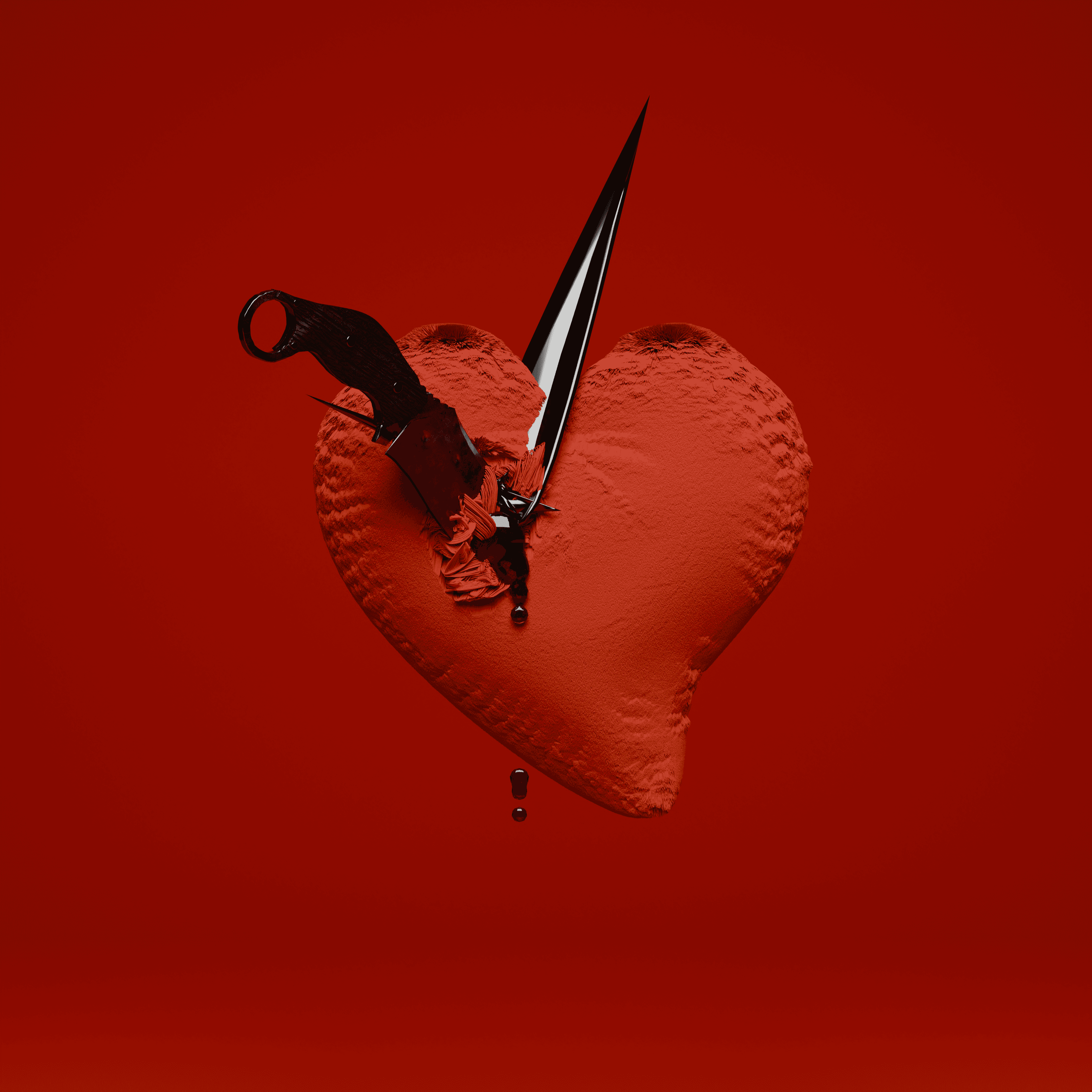 "Knife-twisters" was created for own use for a playlist-cover in my label's Spotify Profile and was created by using Blender and select assets (knife & heart, but with slight modifications) from the BlenderKit-addon.
