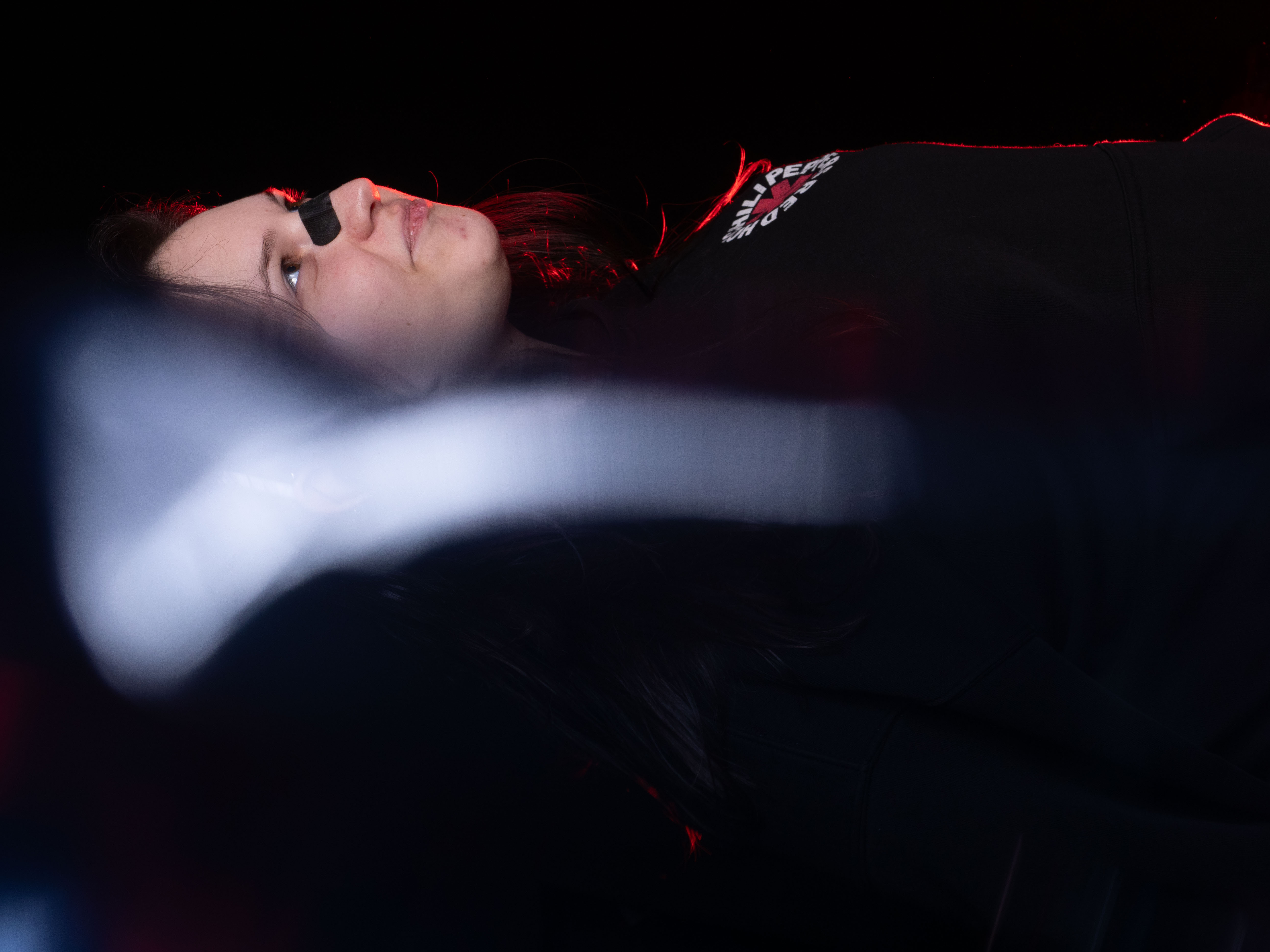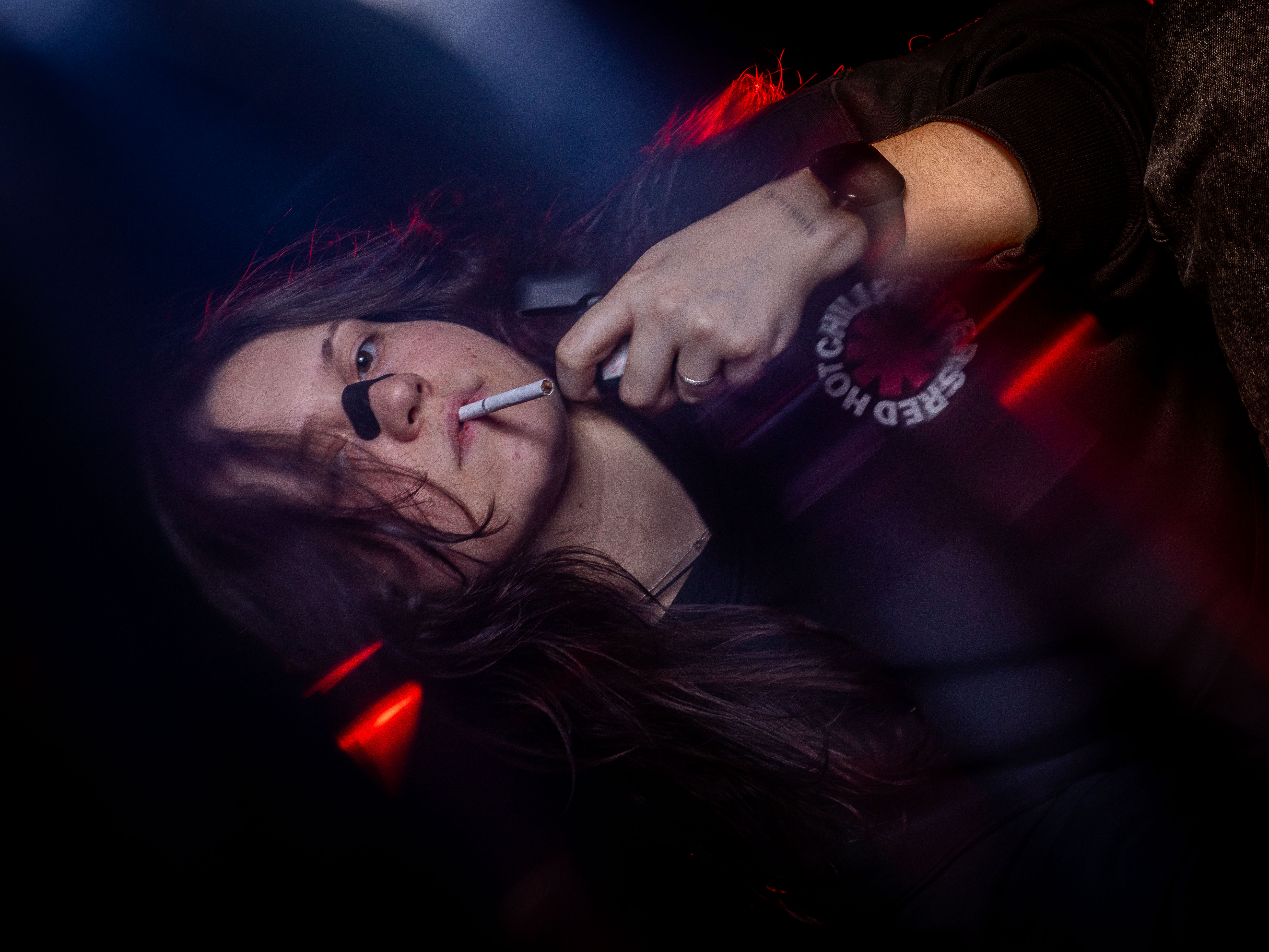 Basically, we were given the opportunity to shoot a few photos in our campuses TV studio and practice taking pictures under different studio situations: Daylight and artificial colored light with a flash. And this? Done with the latter.